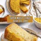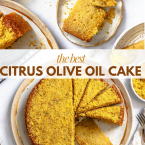 This Orange and Lemon Olive Oil Cake might look pretty humble, but one bite reveals layers that are both comforting and refined. The flavor is clean and bright rather than super sweet, but texture is where olive oil cake really shines. It has a velvety crumb that just about melts on your tongue, and because oil stays liquid at room temperature, the crumb remains exceptionally moist and tender for days!