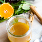 A unique twist on a classic dressing, this orange vinaigrette has warm notes of cinnamon and maple syrup. The perfect recipe for citrus season, use this easy 6 ingredient homemade dressing for salad greens or as a citrus marinade.